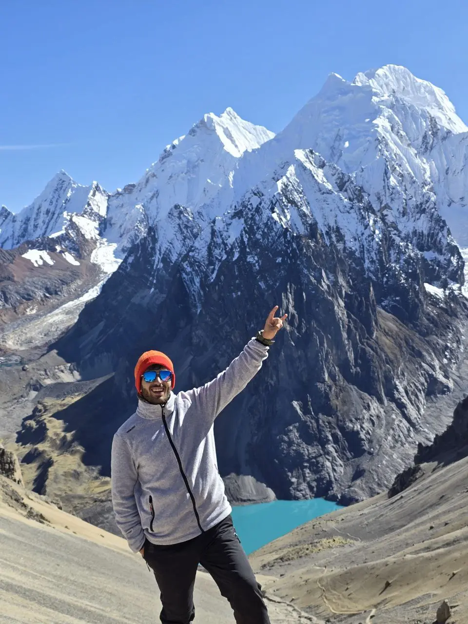 Desde campamento subimos un desnivel de 700 m. hasta paso Siula (4,800m) En caminata se tarda 8 a 9 horas. Este dia pasamos por las tres lagunas .